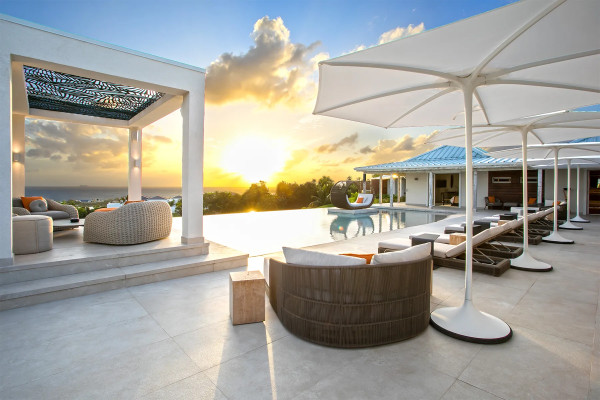 Welcome to Avanti, a breathtaking five-bedroom luxury villa nestled in the exclusive enclave of Terres Basses. This private, gated estate impresses from the moment you arrive, with a palm-lined driveway, tranquil stone fountains, and a grand entrance that opens to 180-degree ocean views stretching to Saba.